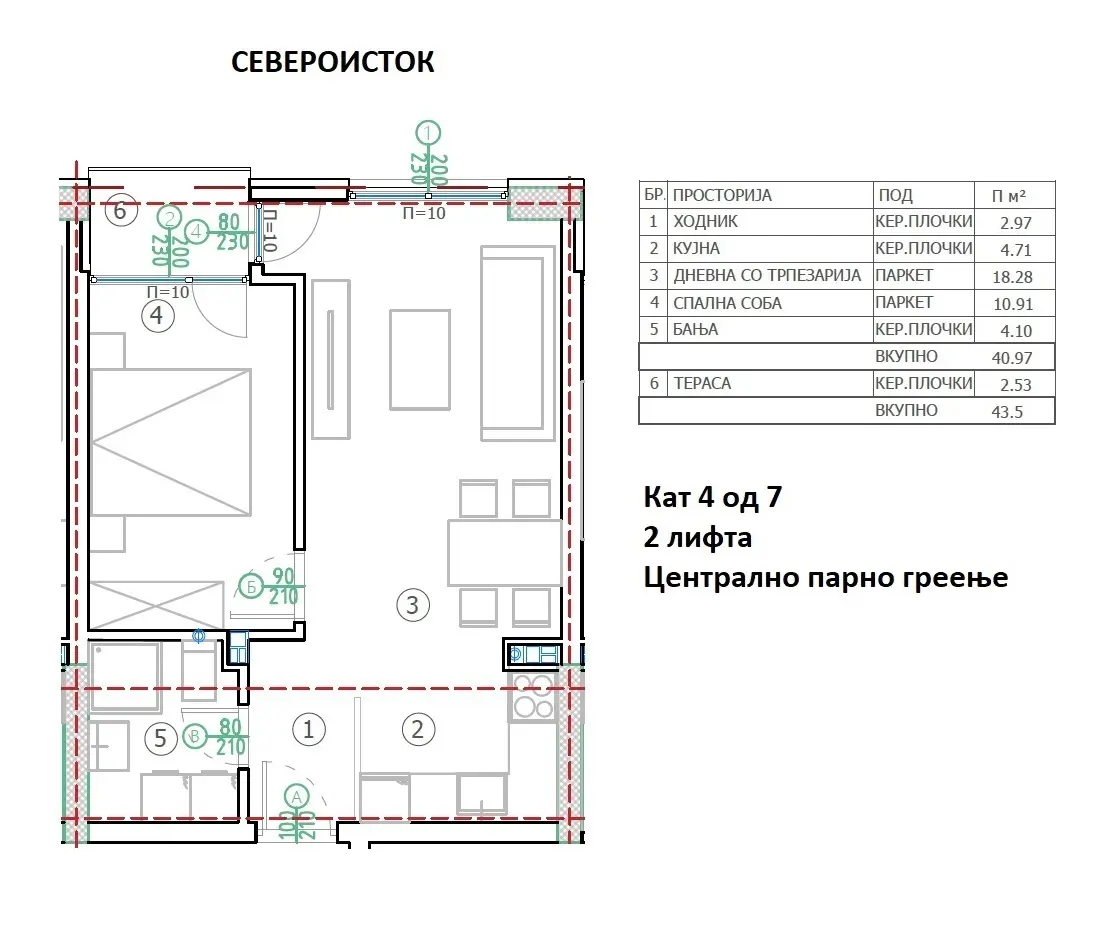 ОБЈЕКТОТ Е СО ВИСОЧИНА П+6 КАТА+ПТК, СО 2 ЛИФТА.